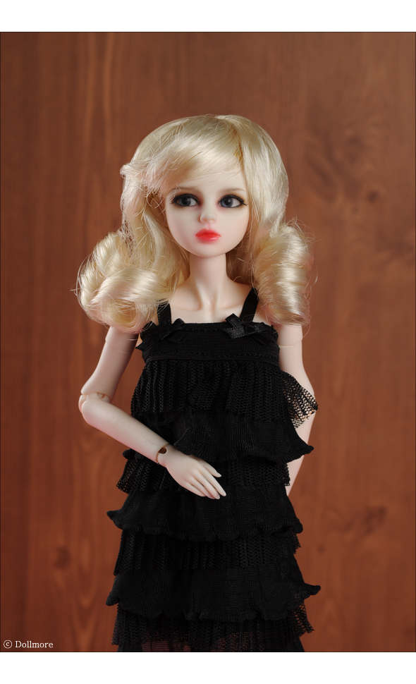 ** (3-4) Lady RB Wig (Blond) ** There is a romantic wig with lovely and feminine wavy hair. slight curls bangs and sides~ and rolled up backhair styling is so lovely~ It fits well on 3-4inches head dolls, Dollmore 12inches fashion doll Dona, Lulu, Dollfie plus and barbie and so on.. * Model by Dollmore 12" Kidult Doll - Adela (32cm)
