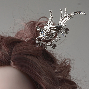 The long, slim hairpin structure allows it to be securely inserted into a doll wig, making it suitable for a variety of hairstyles such as updos, braided styles, twisted hair, or voluminous arrangements. When styled, the decorative top sits gracefully above the hairline, adding a striking focal point without overwhelming the look.